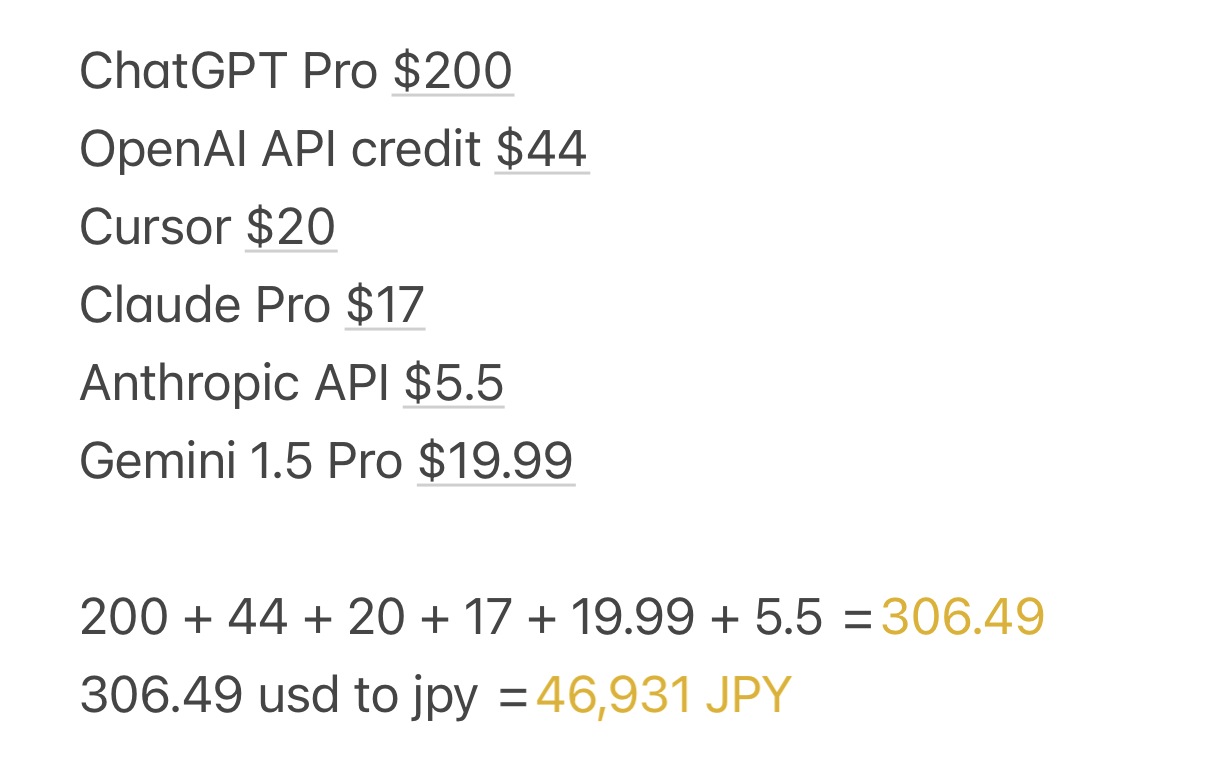 AI ツールで1か月で 4+万円以上使ってしまいました。